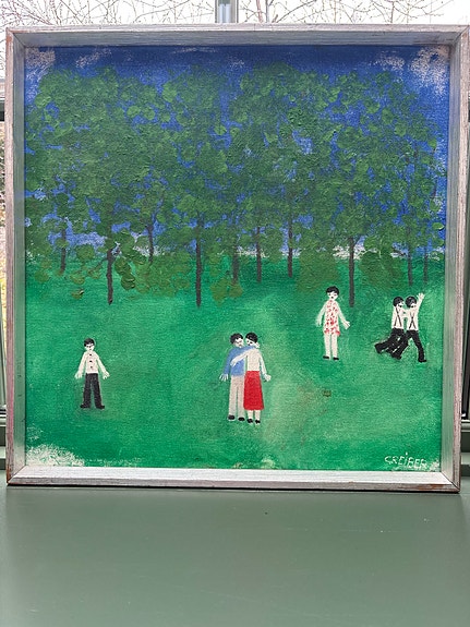 2 000 krGösta Sjölander Tavla oljemålning kustmotiv med kvinna i guldramMariestad2 aprLägg till i favoriter.