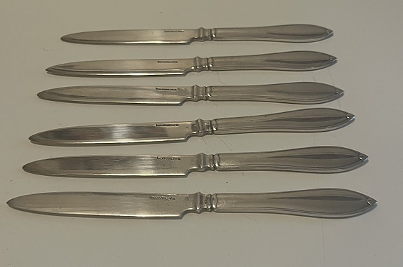 100 kr6 st äldre bordsknivar i nysilver – klassisk modellStockholm21 febKöp nuLastbil i rörelseKan skickasLägg till i favoriter.