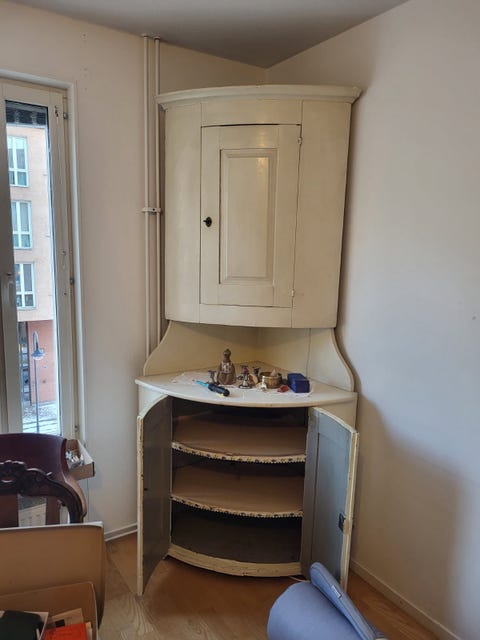 Hörnskåp trä vitt