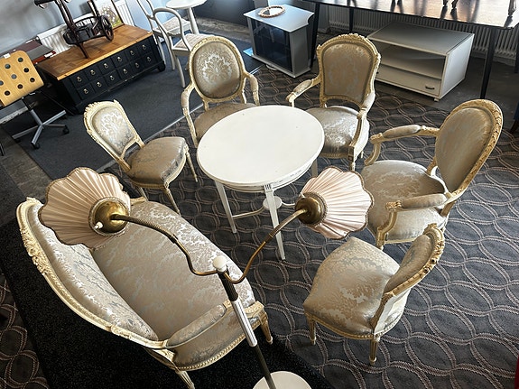 5 000 krAntik Soffgrupp med fåtöljer, stolar och runt soffbord rosa tyg träBodafors5 dagarLägg till i favoriter.