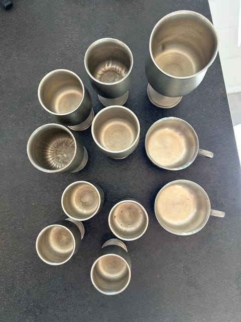 Bägare och muggar i tenn