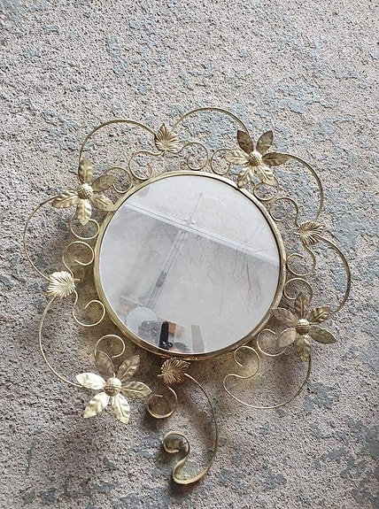 Antik rustik rund spegel