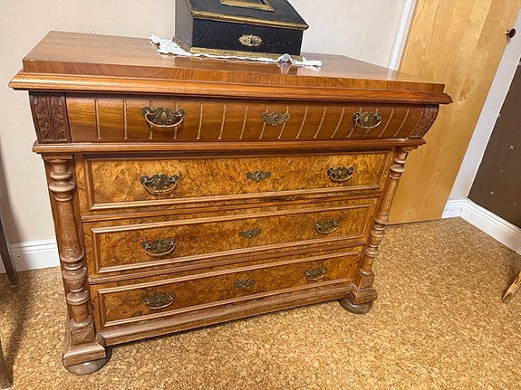 1800-tals byrå i ek med spegel