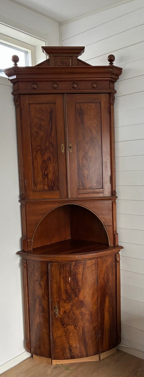 Unikt antikt hörnskåp i trä