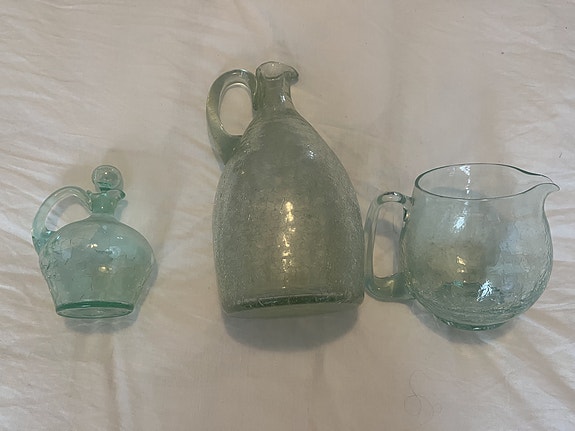 300 krKrackelerat grönt glas – karaff, dressingkanna och liten flaska/dekanterStockholm1 dagLägg till i favoriter.Öppna annons