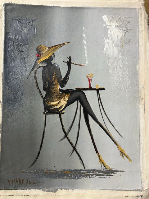 275 krTavla oljemålning 30x40 | kvinna med drink och cigarrett , hatt , siluettKristianstad7 aprKöp nuLastbil i rörelseKan skickasLägg till i favoriter.