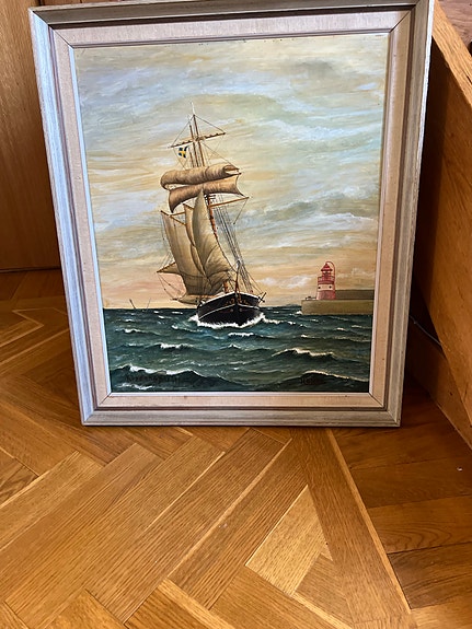 333 krH Ström tavla segelfartyg vid fyr oljemålning med ramBrämhult8 aprKöp nuLastbil i rörelseKan skickasLägg till i favoriter.