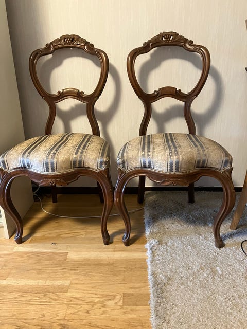 300 kr2 st antika stolar, Rokoko / Nyrokoko, broderade sitsarSundbyberg, Stockholm18 aprLägg till i favoriter.Öppna annons