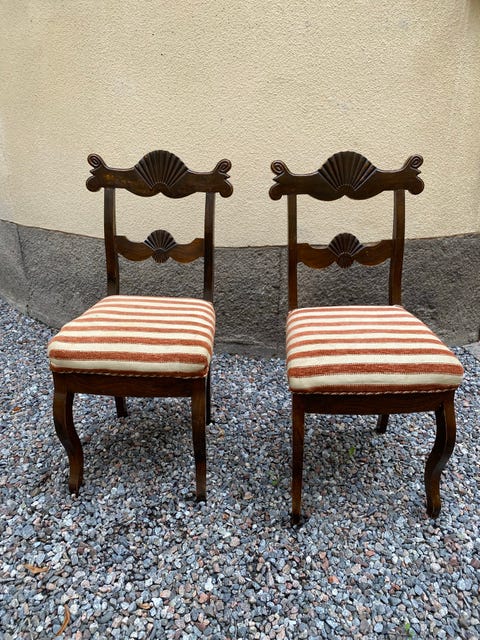 600 krAntika trästolar med randigt tygklädda sittdynor 2 styckenStockholm, Stockholm11 janLägg till i favoriter.Öppna annons