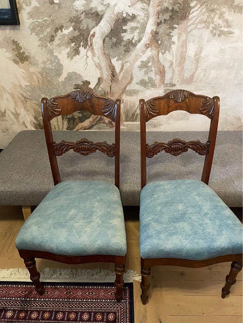 400 krAntika stolar i trä med klädd sits, 2 styckenSollentuna, Stockholm27 janLägg till i favoriter.Öppna annons