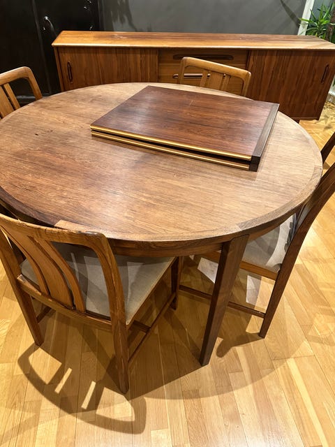 20 000 krHenry Rosengren Hansen, matbord med iläggsskiva och 4 stolar.Motala31 janLägg till i favoriter.