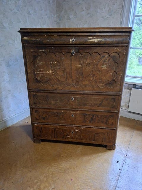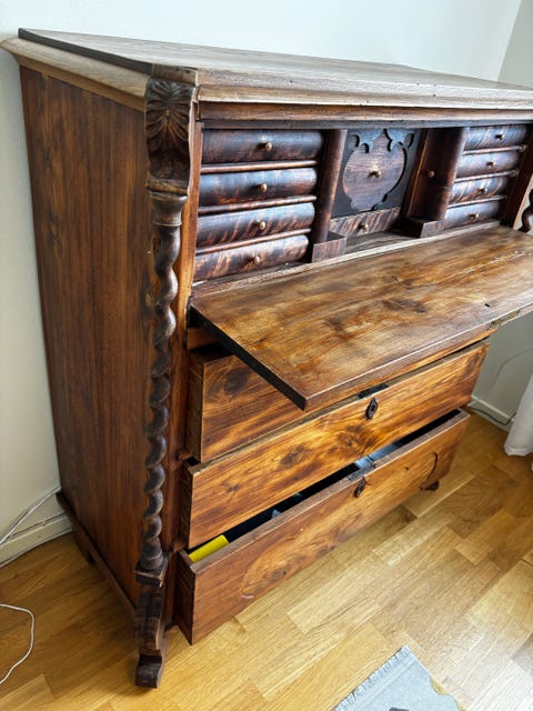 Antik Sekretär i trä med lådor och skåp