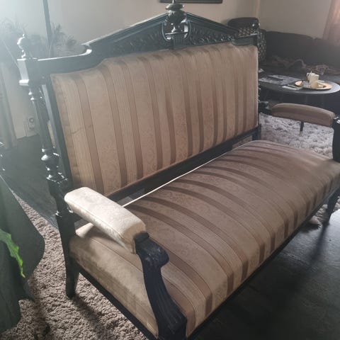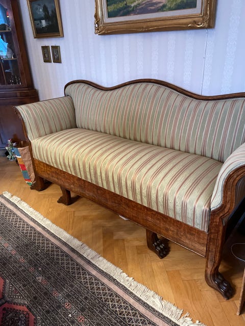 antik omtapetersad soffa