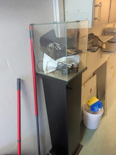 Akvarium med bänk trä
