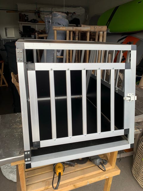 Hundbur i metall och trä