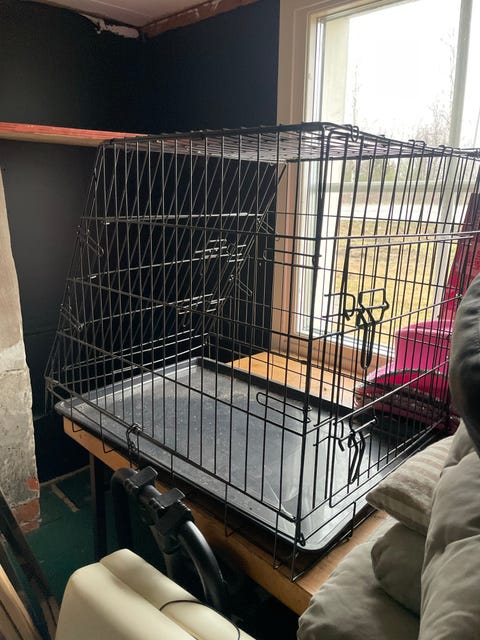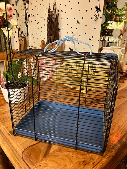Inomhus kanin med bur