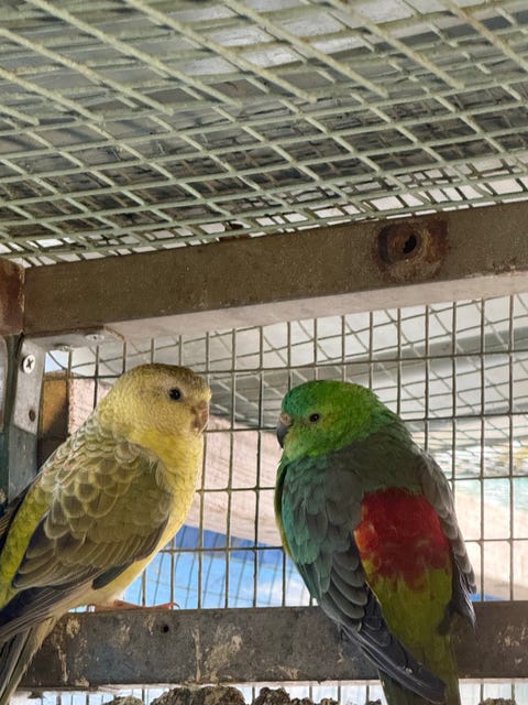 Säljer 3 dvärgpapegojor med bur