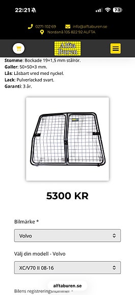 4 500 krHundgrindar, avdelare & smutsskydd modell anpassat för Volvo V70 XC70 2008-2016.Bjuråker5 dagarLägg till i favoriter.