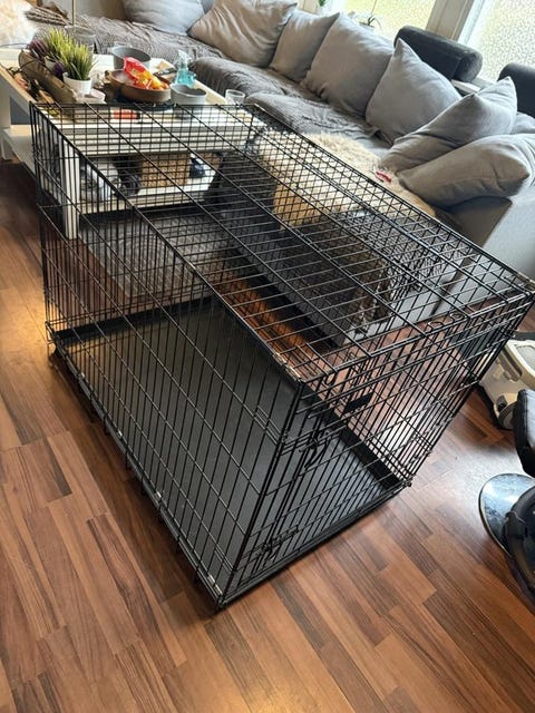 Metallbur för hund eller katt svart med öppningsbar dörr