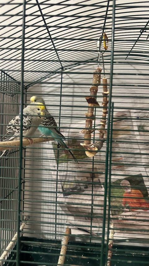 Fågelbur med två kärleks fåglar