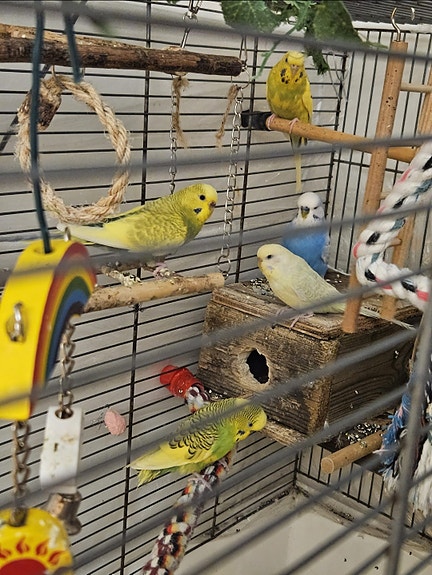 Undulater med bur & tillbehör