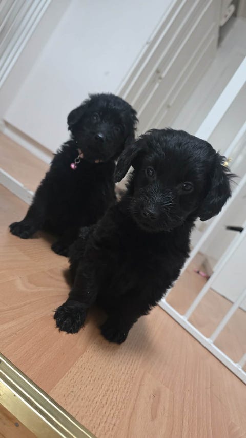 Två labradoodle blandisar