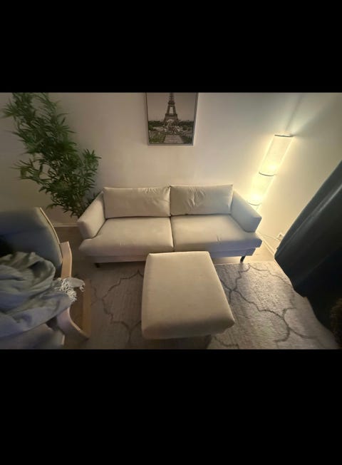 3 st Soffa med fotpall mörkblå tyg
