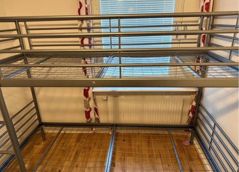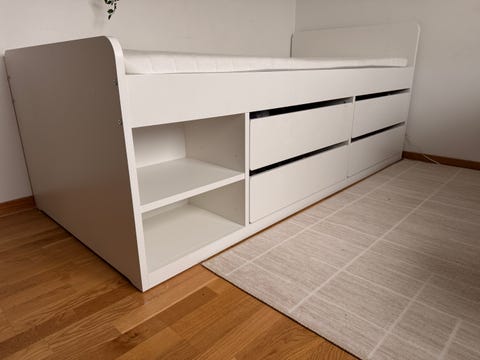 Säng och hyllor