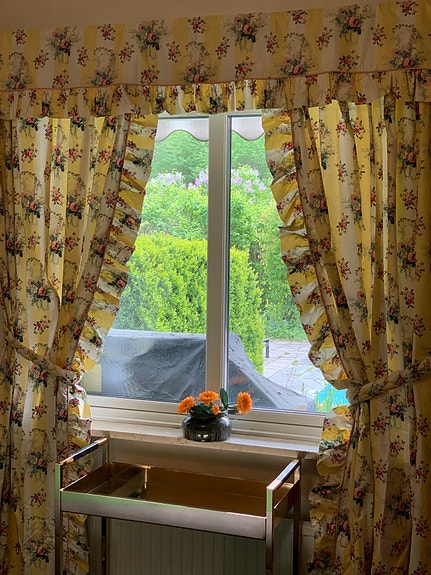 390 krFodrade Gardiner i blommig chintz med kappa och oktag för ett fönstyerDanderyd17 timLägg till i favoriter.Öppna annons