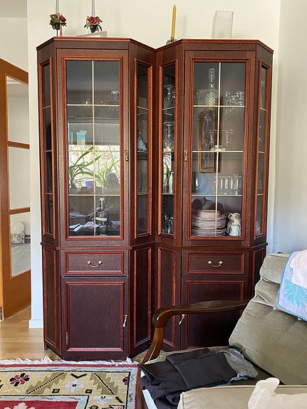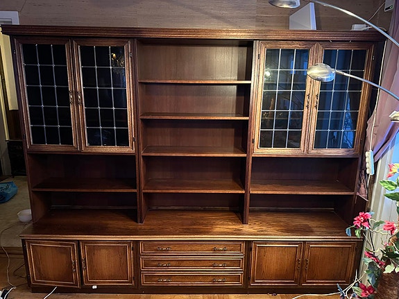 Bokhylla med vitrinskåp