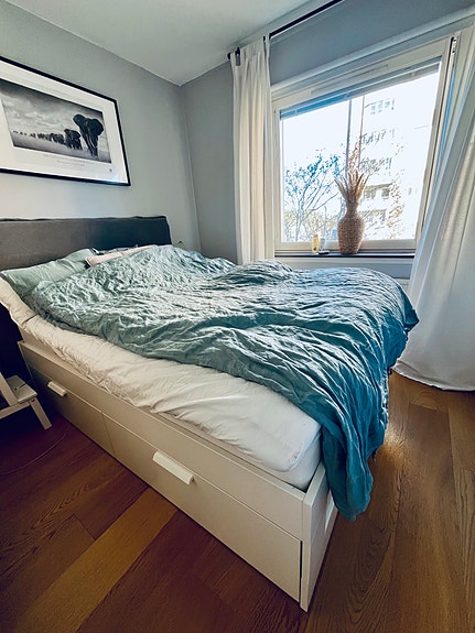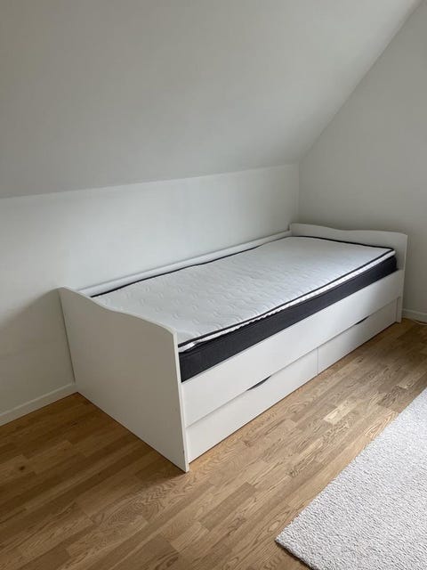 180 cm säng med sänggavel