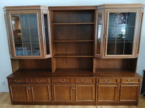 Bokhylla +vitrinskåp