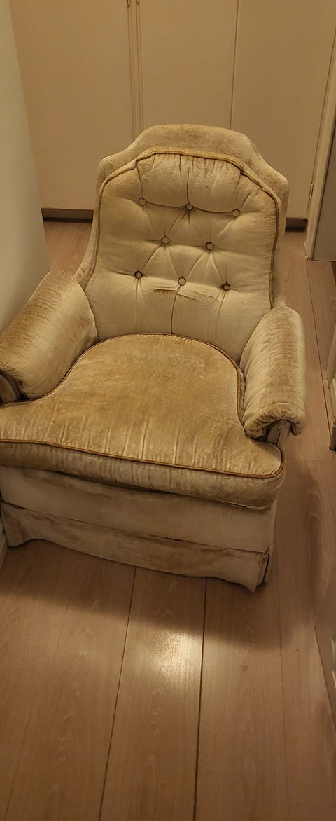 Äldre fåtölj i plysch/sammet