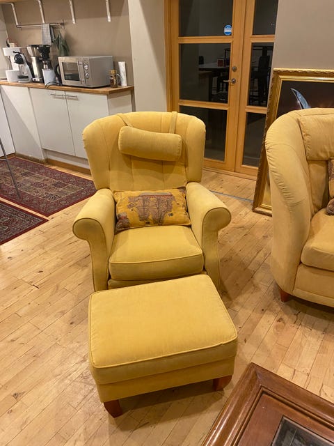 Brittfurn fåtölj med pall
