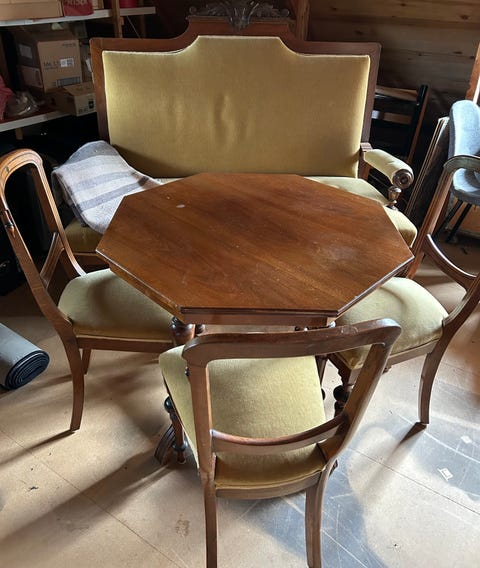 400 krMatgrupp med åttkantigt träbord och stoppade stolarKlippan2 dagarLägg till i favoriter.Öppna annons