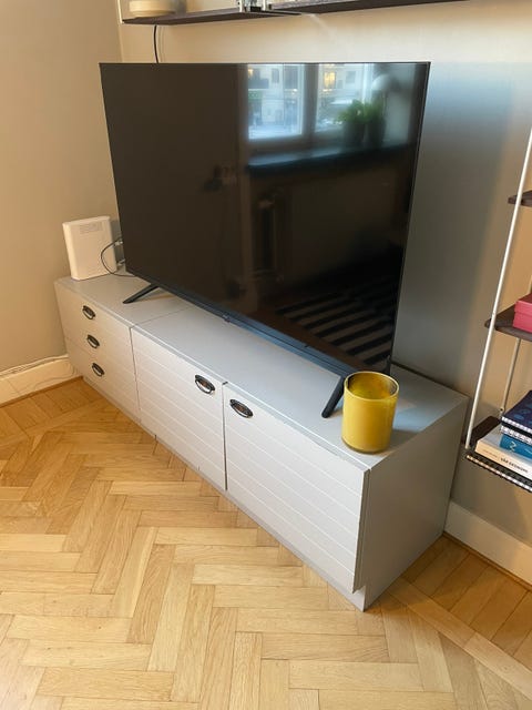 Möbelset med vitrinskåp, byrå och TV-bänk i bok melamin