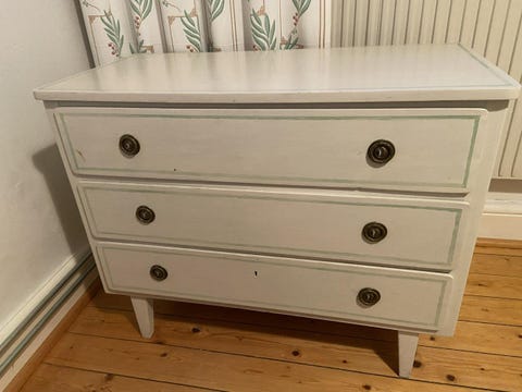 Liten vit byrå i trä