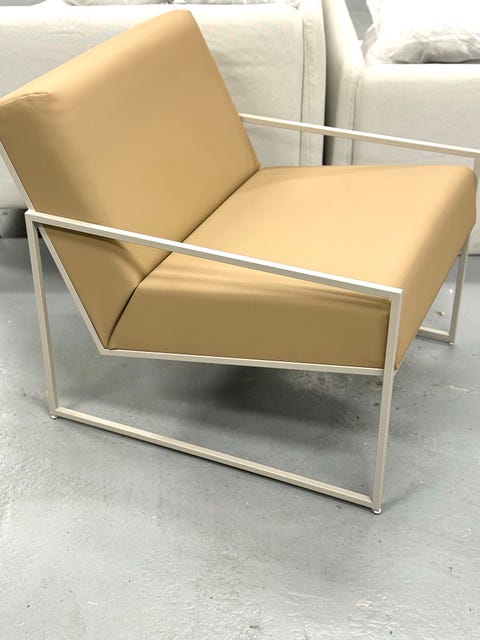 Blå sammet fåtölj med kromade armstöd, 1970-tal