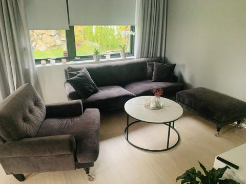 Fåtölj med fotpall