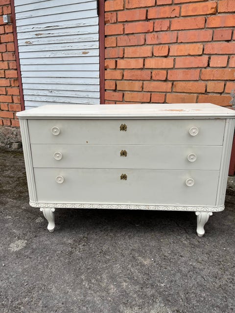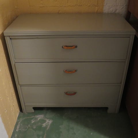 Äldre 3-lådig byrå, gråmålad i trä, mått BxDxH ca 91x45x82cm, hallbyrå, klädbyrå