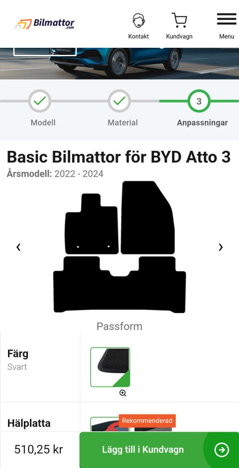 BYD Atto 3 – Bilmattor i svart (Årsmodell 2022–2024)