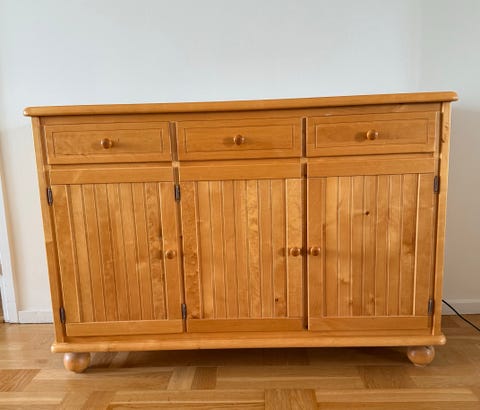 Bortskänkes sideboard 130 lång med glasskivor på och tre resväskor i olika stor