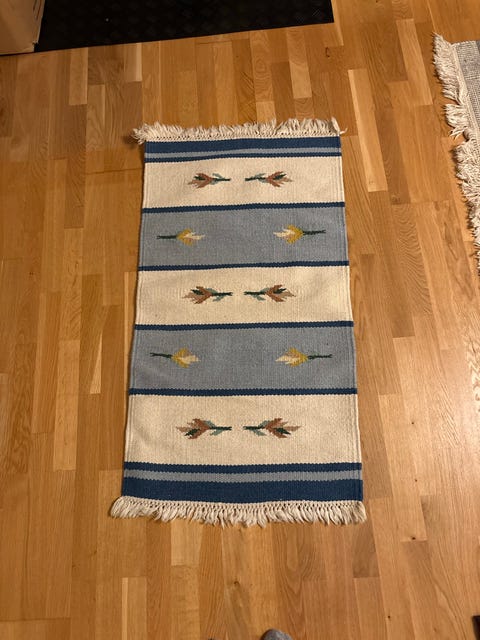 5 000 krMatta, rektangulär i huvudsak grönt och blått med mönstrad bård och fransarStockholm23 marLägg till i favoriter.Öppna annons