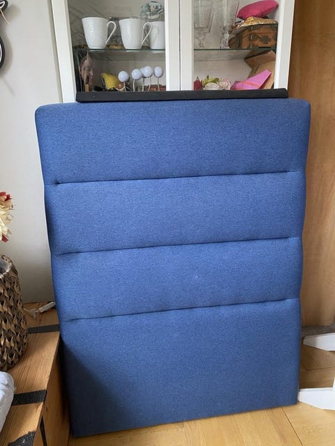 Blå stoppad sänggavel till 90-säng