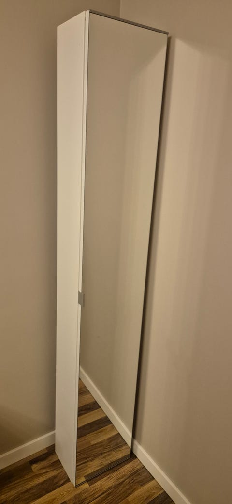 1 000 krHögskåp m 4 hyllplan/dörr, vit/spegelglas, 30x21x180 cm IKEAAlingsås40 minLägg till i favoriter.