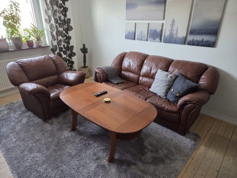6 000 krSoffgrupp 3-sits soffa och 2st fåtölj i mörkblå läder med glas soffbordJärfälla12 timLägg till i favoriter.