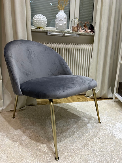 Fåtölj sammet mörkgrå med träben