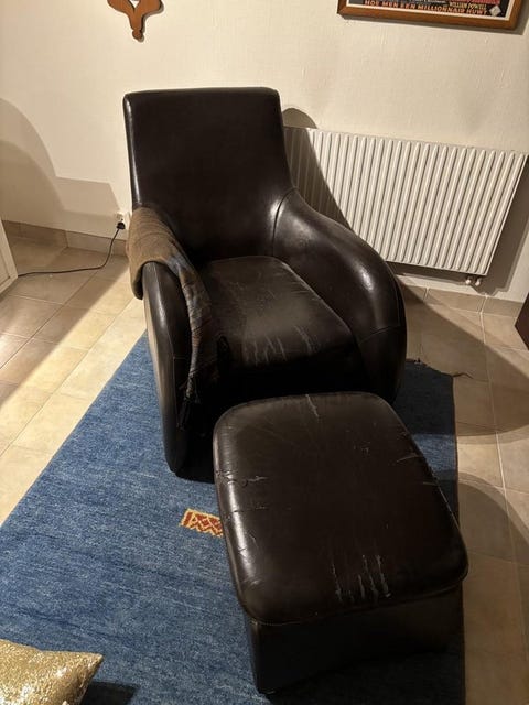 svart läder fåtölj