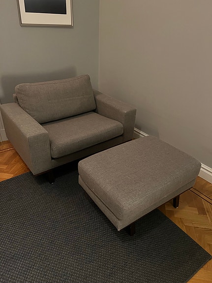 3 000 krStor och bekväm fåtölj med pall – bred loungemodellStockholm13 marLägg till i favoriter.Öppna annons