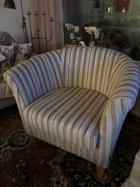 Fåtölj randigt tyg beige